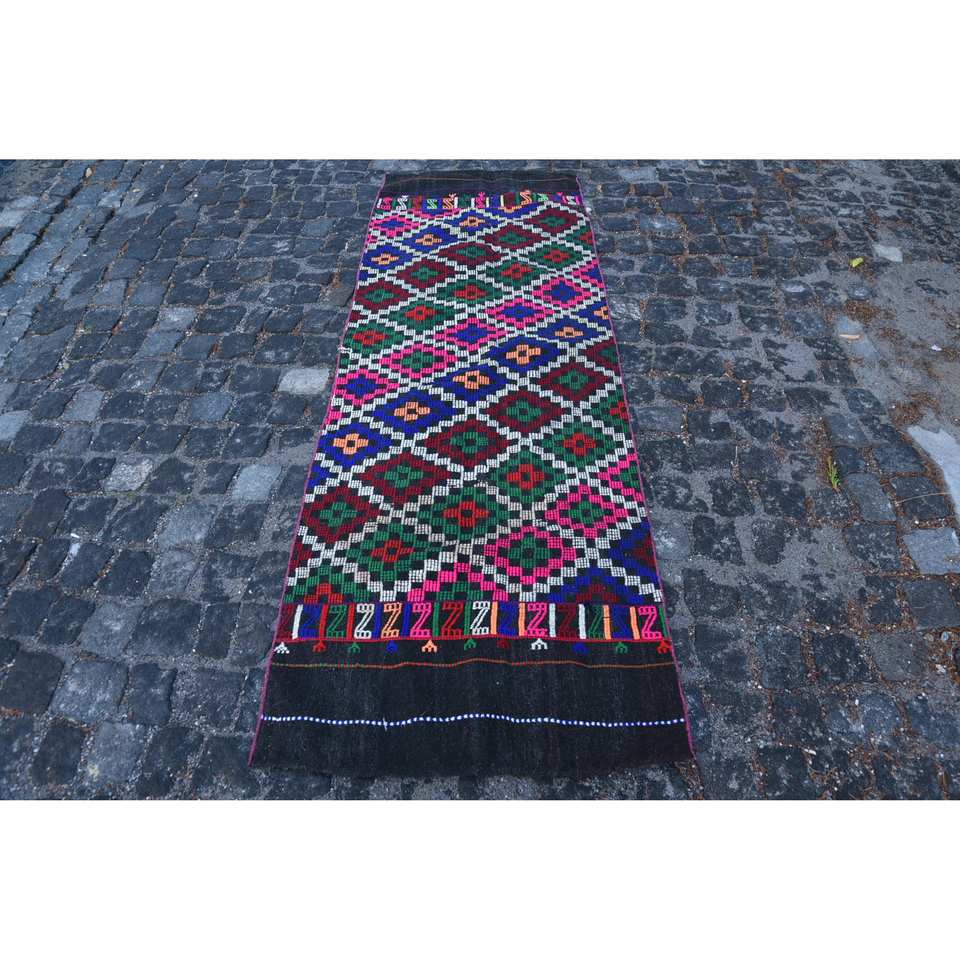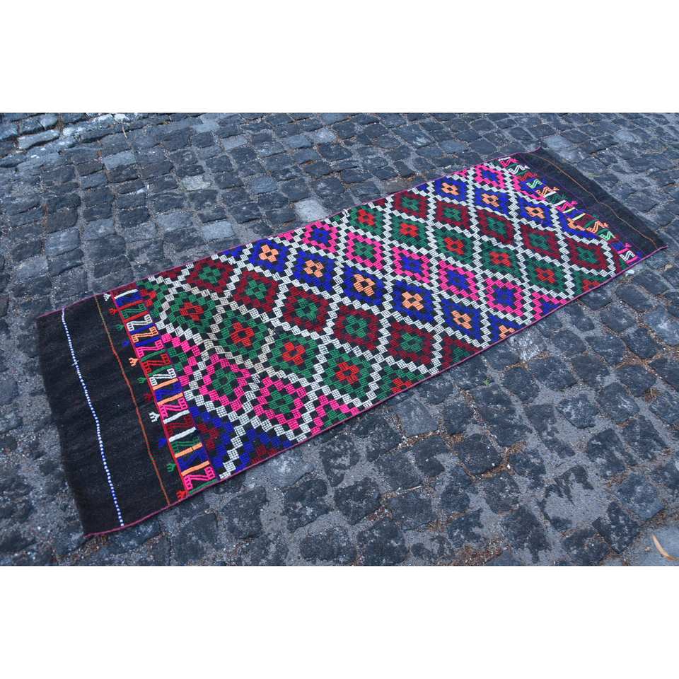 Tapis Ethnique Classique en Laine Beige 2.5 X 7.1ft Vintage Turc Géométrique Patchwork Latex pour Grand Couloir Rectangle Tapis de Chambre