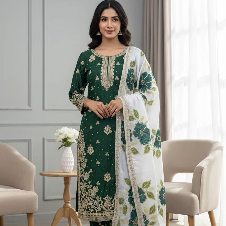 Détails du Dupatta:Tebby Organza avec broderie de sequins et bordure en dentelle