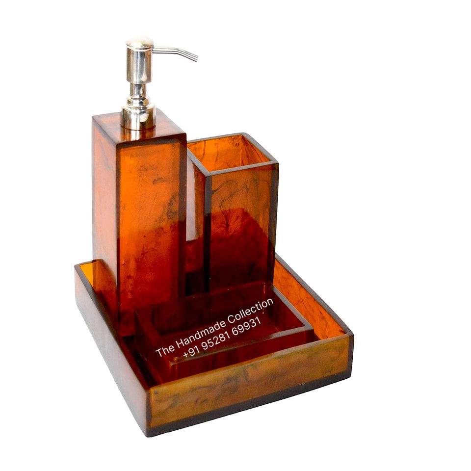 Ensemble d'accessoires de salle de bain classique quatre pièces rond en polyrésine noir mat avec distributeur de savon en mousse par The Handmade Collection