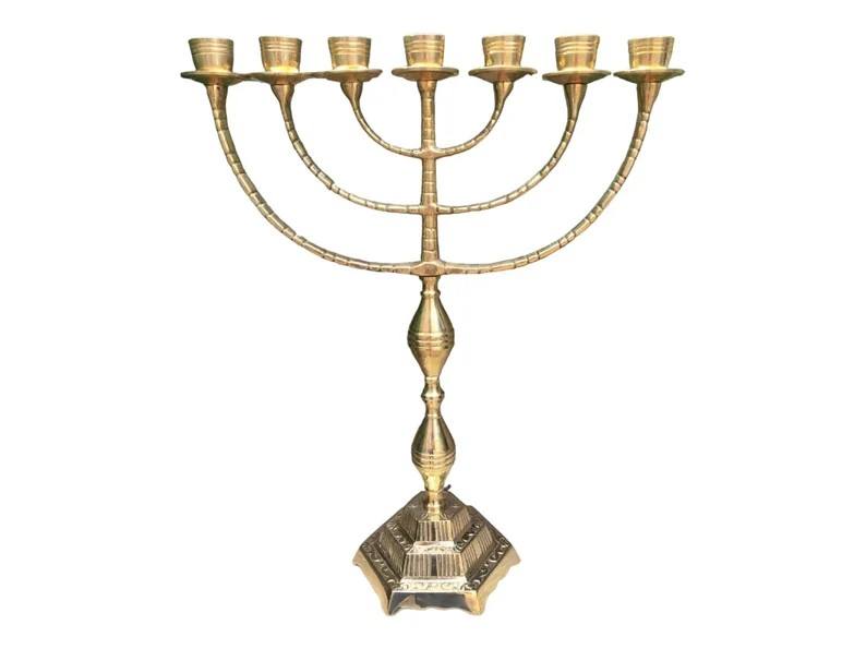 Ménorah classique en métal doré à base arrondie, porte-bougie juif traditionnel, décoration festive pour la maison