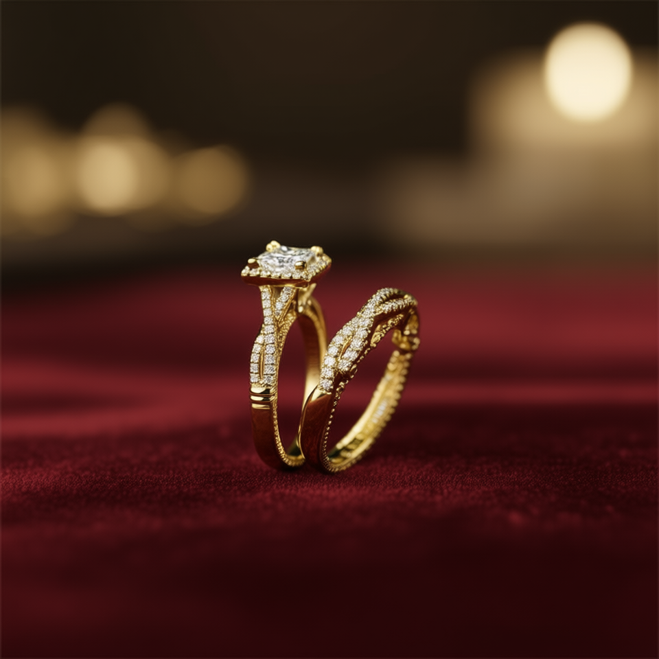 Ensemble de trois bagues classiques en or avec sertissage en diamant taille Asscher pour bijoux de mariage pour femmes H522