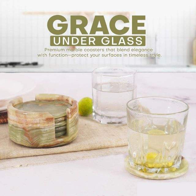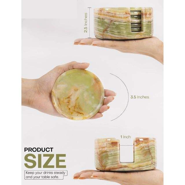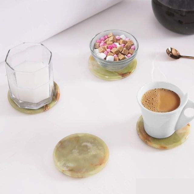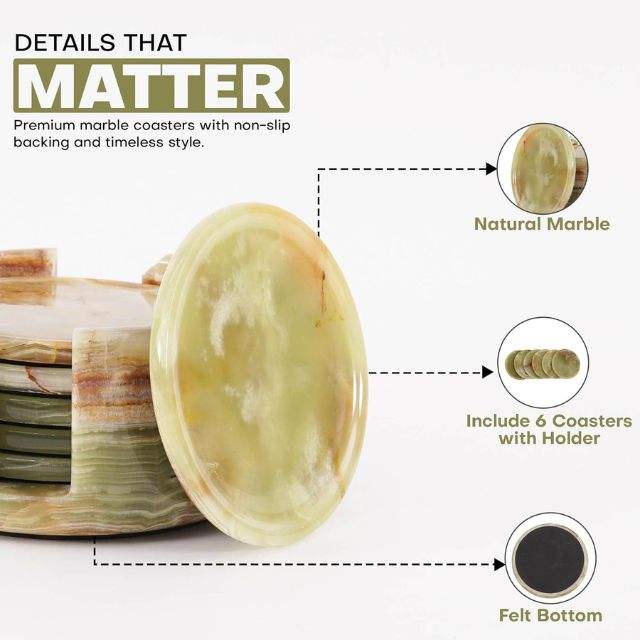 Ensemble de 6 sous-verres en céramique onyx vert classique, support rond de 3,5 pouces de diamètre, 0,4 pouces d'épaisseur, durables, réutilisables, écologiques
