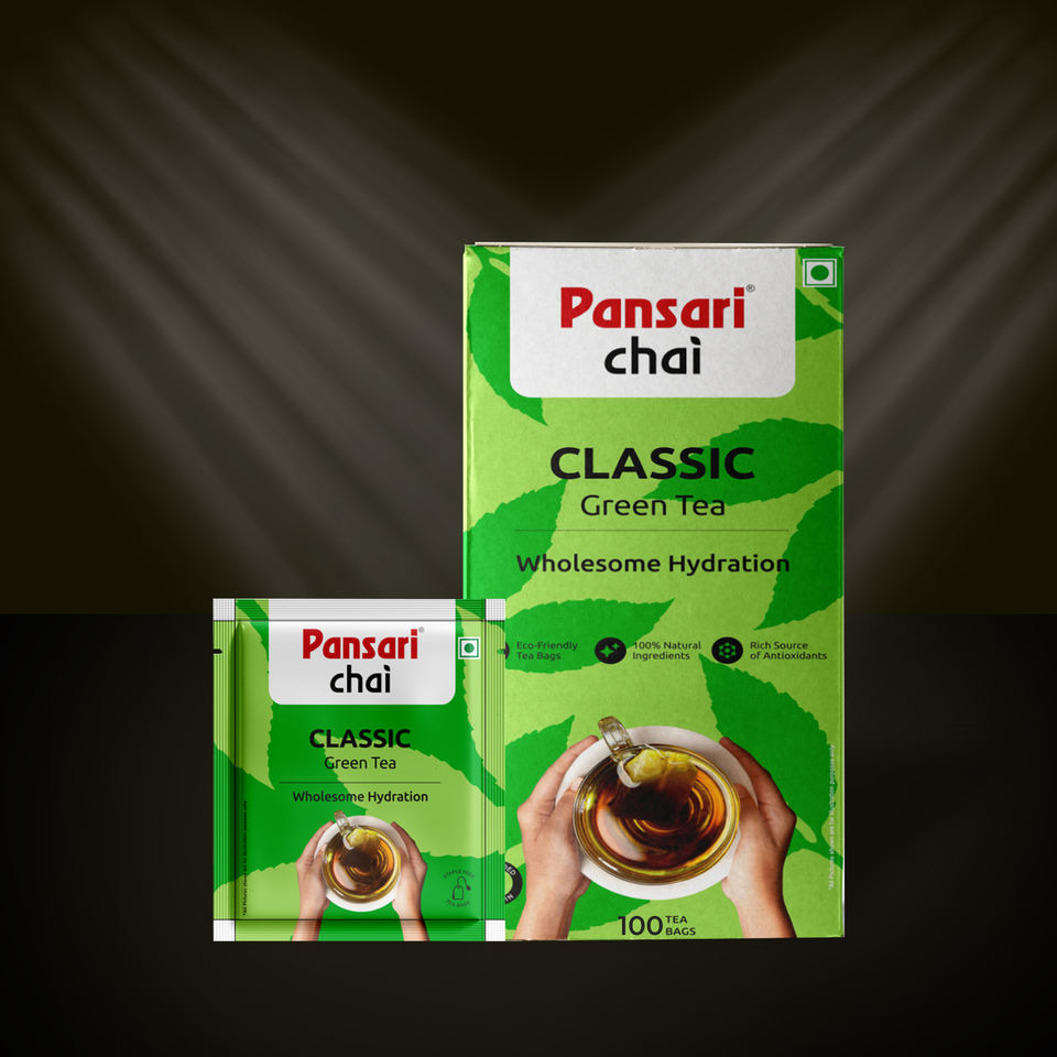 Thé Vert Assam Classique Brut, Thé Détox Santé, Double Compartiment, 100 Sachets (1,5g chacun), Emballage Boîte, Hydratation Saine