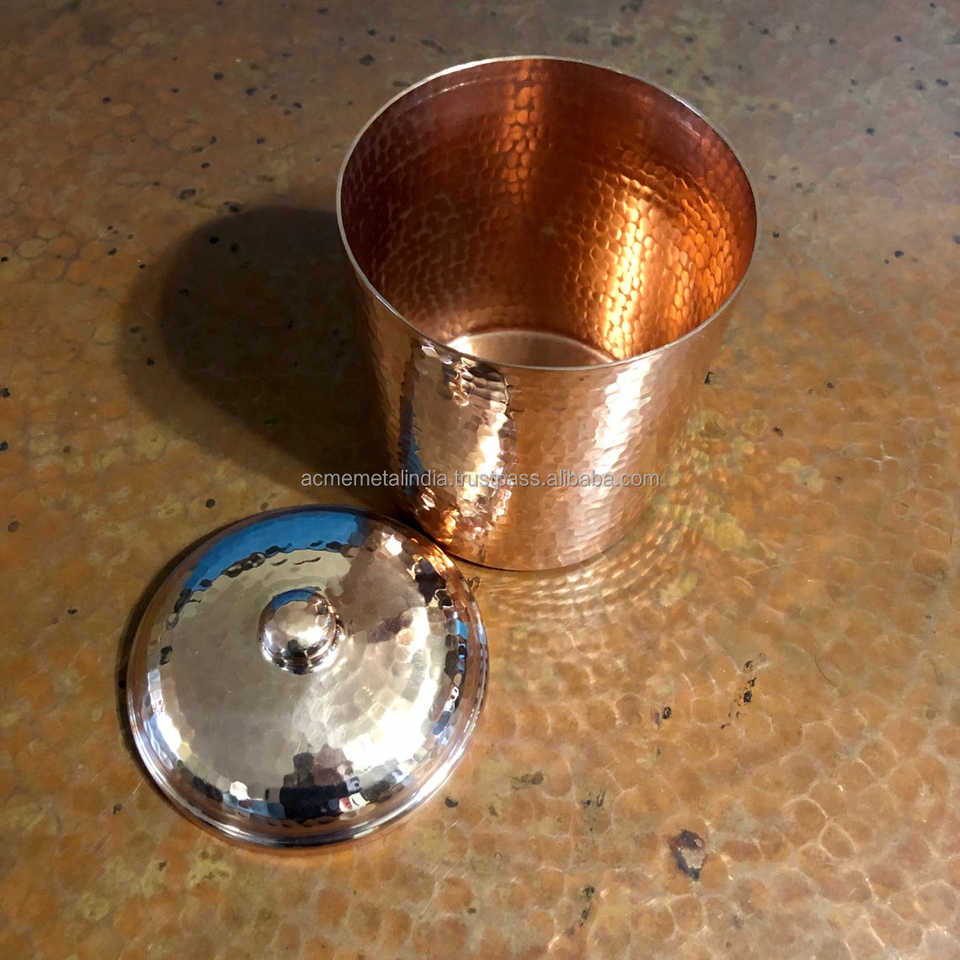 Récipient en métal en cuivre martelé classique avec finition en cuivre parfait pour le rangement des ustensiles de cuisine et les accessoires