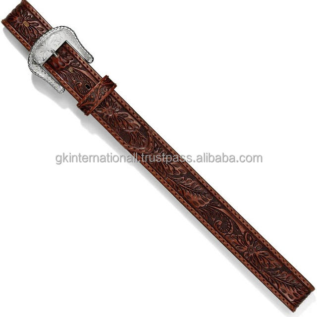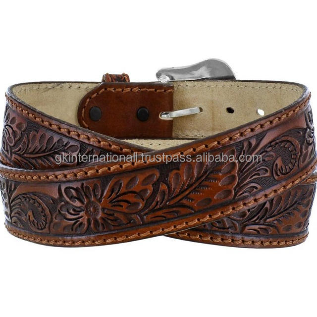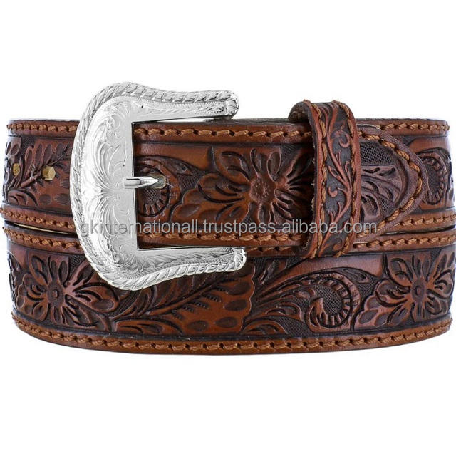 Ceinture d'outillage en cuir occidental pour hommes de qualité supérieure sculptée à la main classique avec boucle occidentale de créateur plaqué argent