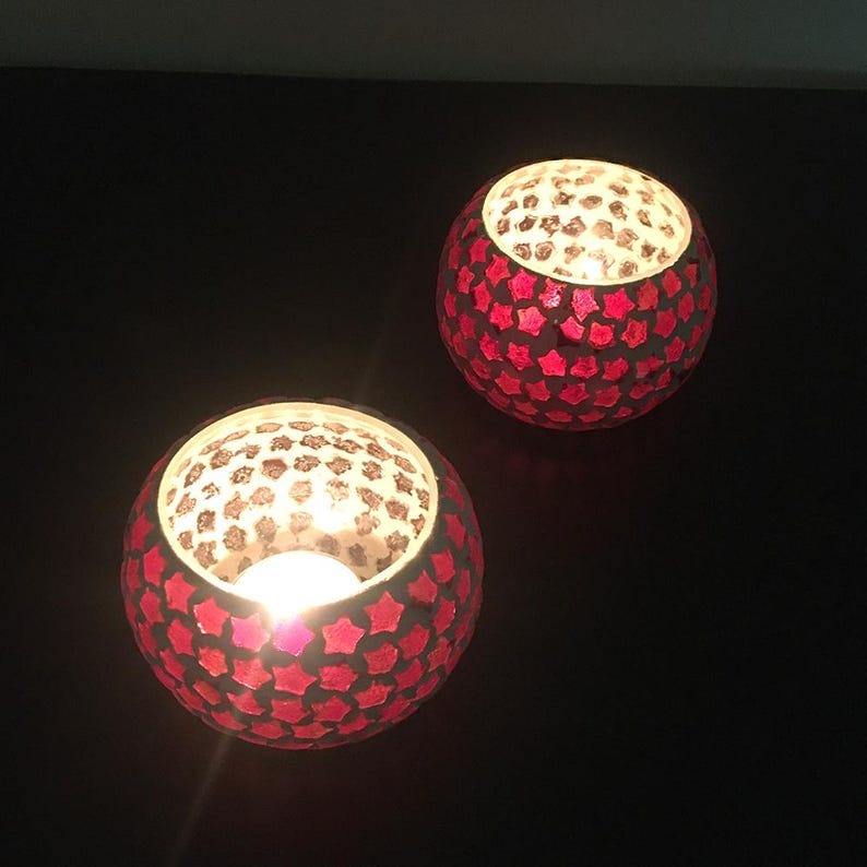 Modern Handmade Crackle Glass Mosaic Craft Candle Holder Votive Centerpiece Tealight Lighting Christmas Home Decoration