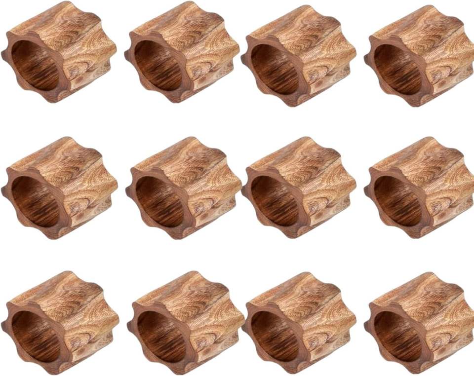 Lot de 5 anneaux de serviette classiques faits à la main en bois massif rustique, supports de table de 5 cm, écologiques, pour usage quotidien, fêtes et Noël