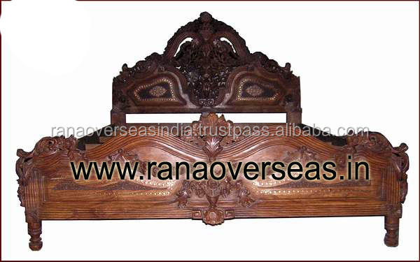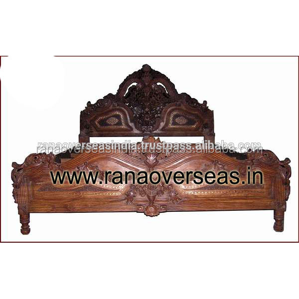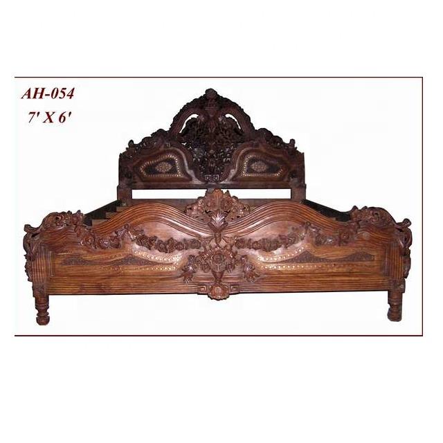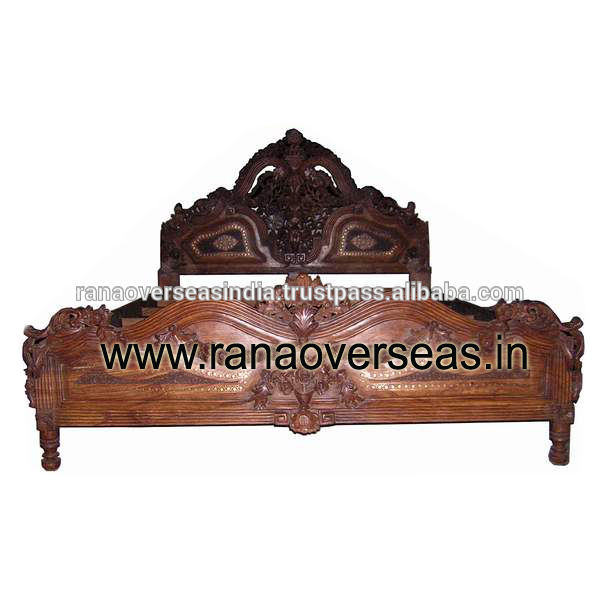 Double lit en bois marron classique fait à la main, avec incrustation en laiton et Design sculpté pour la maison, de couleur marron, offre spéciale