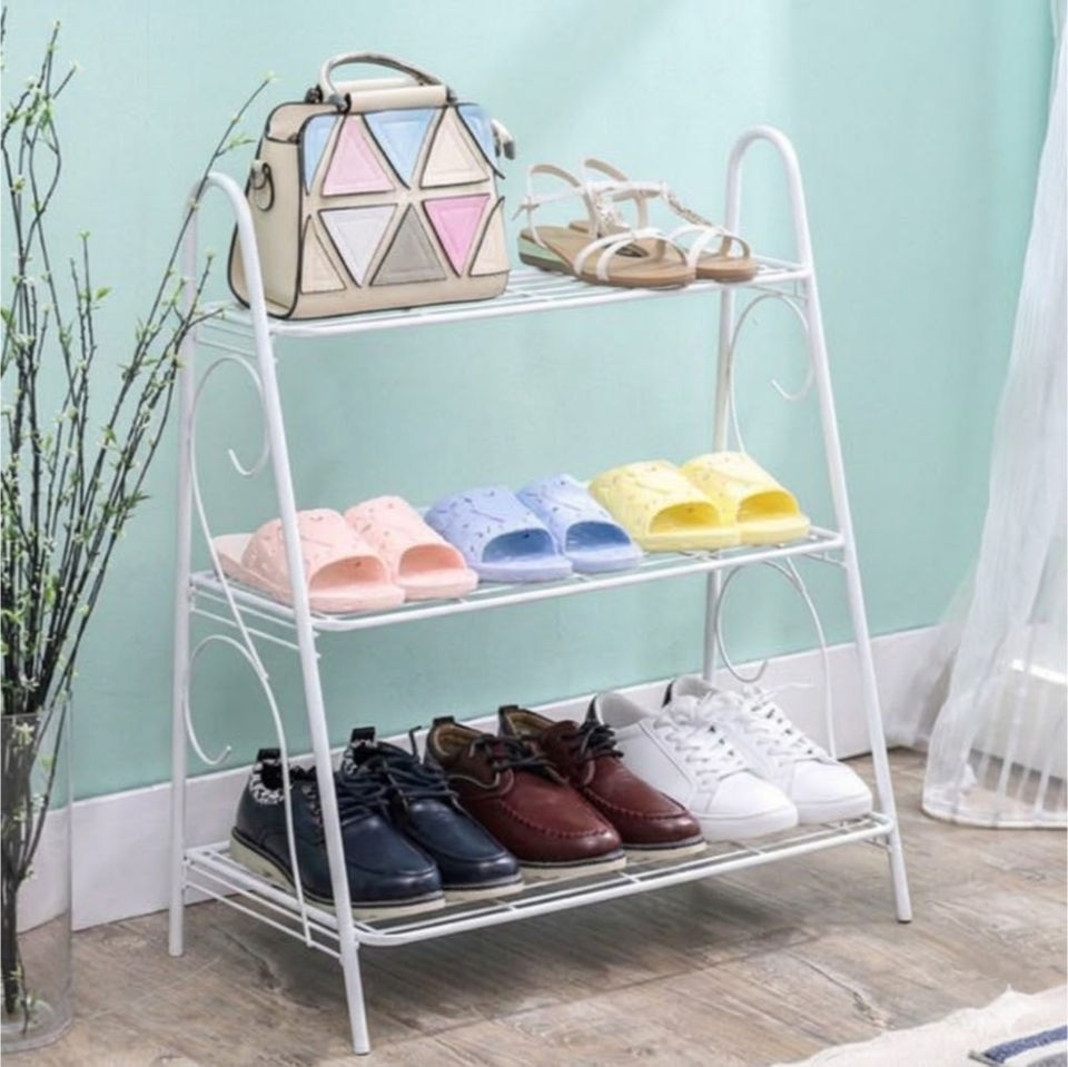 Organisateur de chaussures classique en fer, gain de place, étagère de rangement en métal blanc pour entrée et salon, présentoir à chaussures