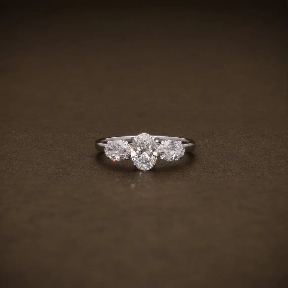 Bague classique à trois pierres en diamant de laboratoire, diamant ovale certifié, or 14K ou 18K, pour fiançailles ou anniversaire