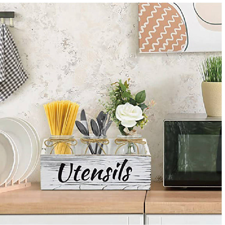 Classique Grand Rectangle En Bois Porte-Ustensiles Ferme Cuisine Comptoir Bac De Rangement avec Laque Technique Organisateur De Bureau