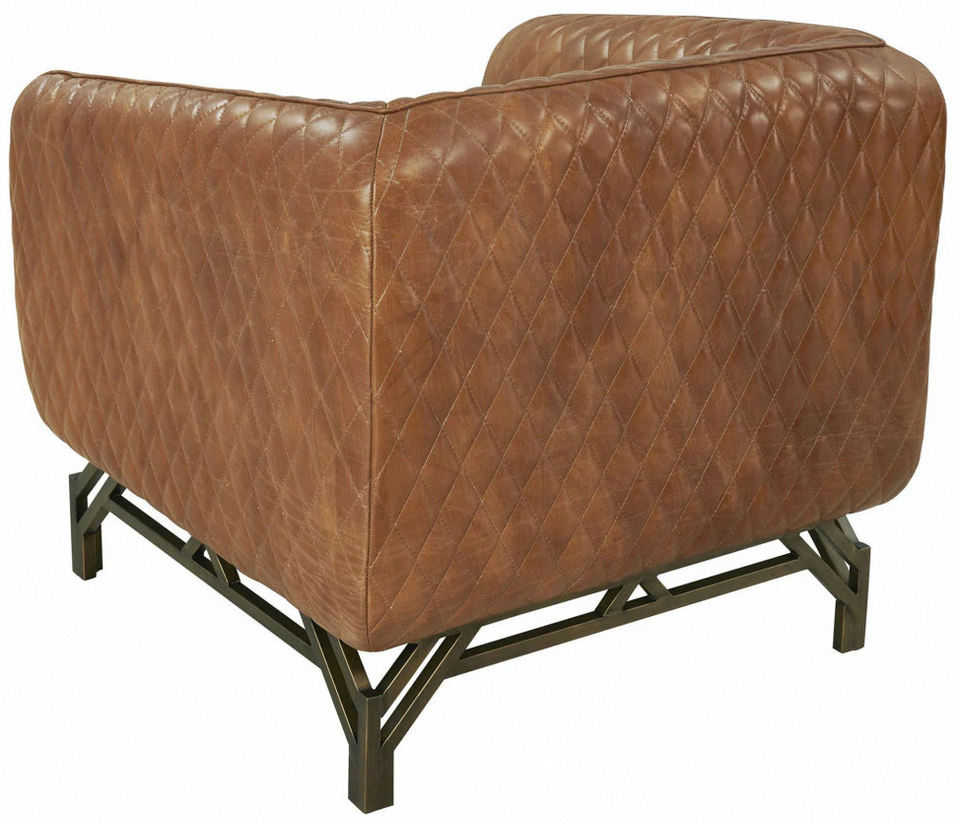 Fauteuil d'appoint en cuir capitonné Cognac de luxe