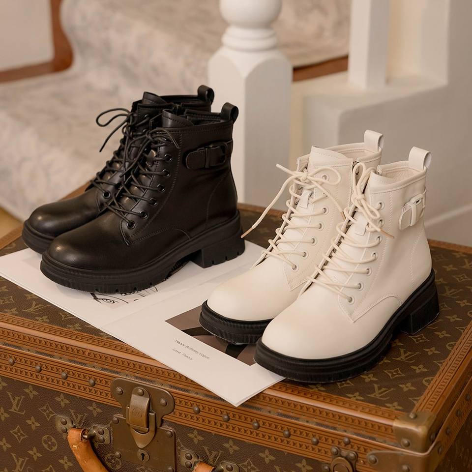 Bottes classiques en cuir véritable à lacets avec doublure de talon rembourrée et soutien de la voûte plantaire durable, design fonctionnel pour toutes les saisons