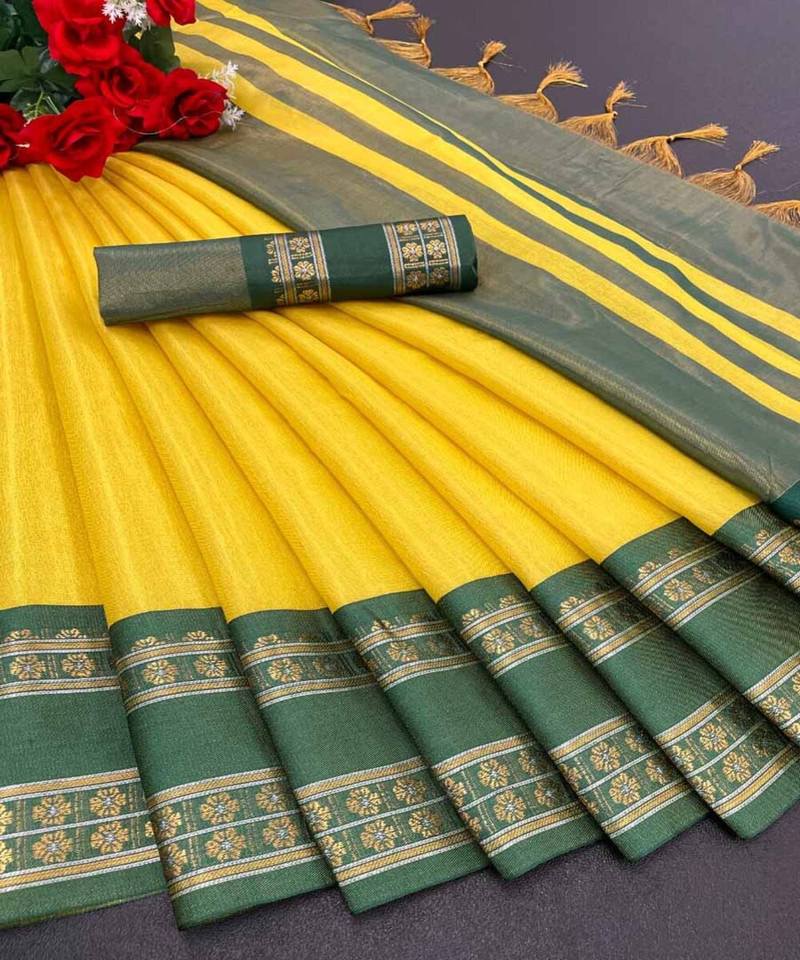 Saree classique en lin avec pierre et perle Kanchipuram Office Wear Saree avec broderie et détails Tussle