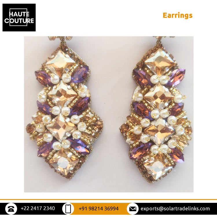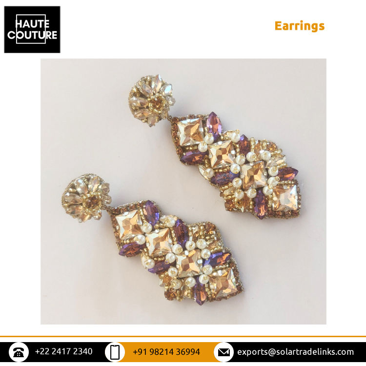 Look classique cristaux de topaze carrés faits pour femmes vêtements brodés à la main à la main arc-en-ciel Marquis boucles d'oreilles au meilleur prix