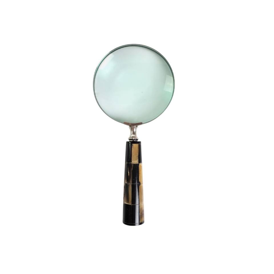 Loupe classique avec manche en os de buffle bicolore noir et blanc, cadre en laiton, accessoire de bureau élégant pour la lecture