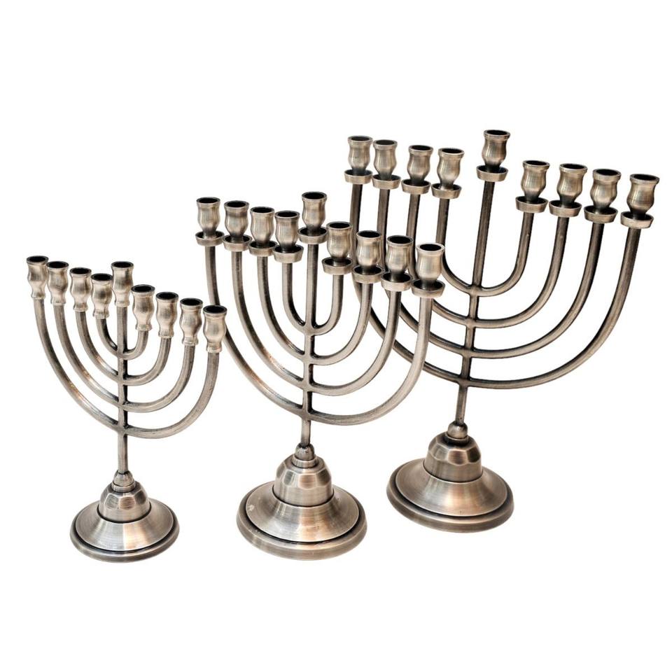 Ménorah classique argent mat à neuf branches, porte-bougie traditionnel juif pour Hanouka, forme équilibrée