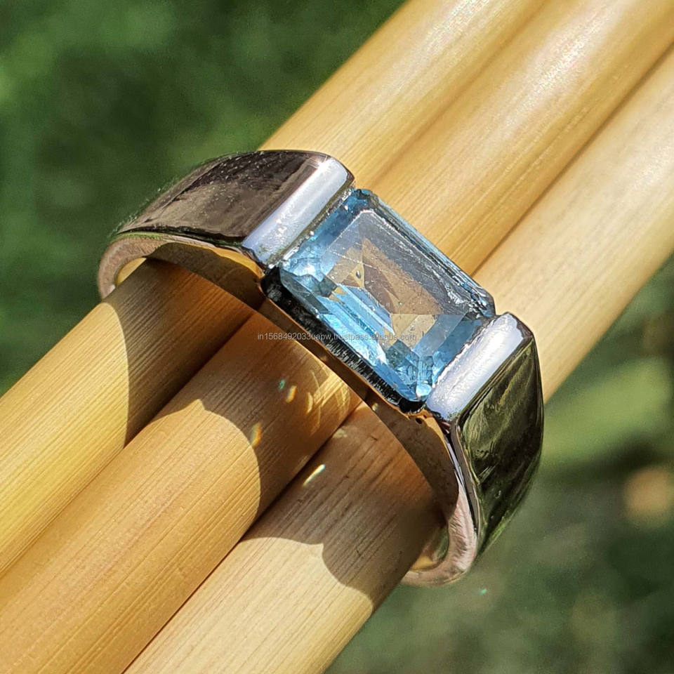 Product name:Natural Sky Blue Topaz 925 Sterling Silver Ring for Men Women