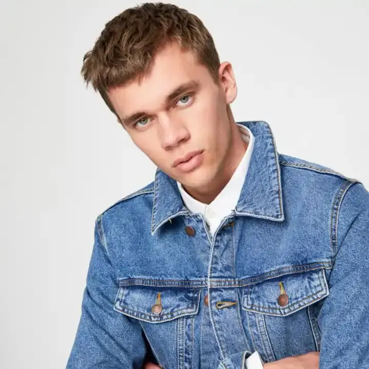 Veste en jean bleu délavé classique pour homme avec broderie personnalisée, style moto, vêtement d'extérieur