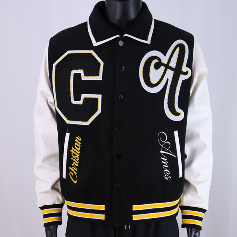 Veste de baseball classique pour homme en laine et polyester, style rétro universitaire, imperméable à l'avant, écologique