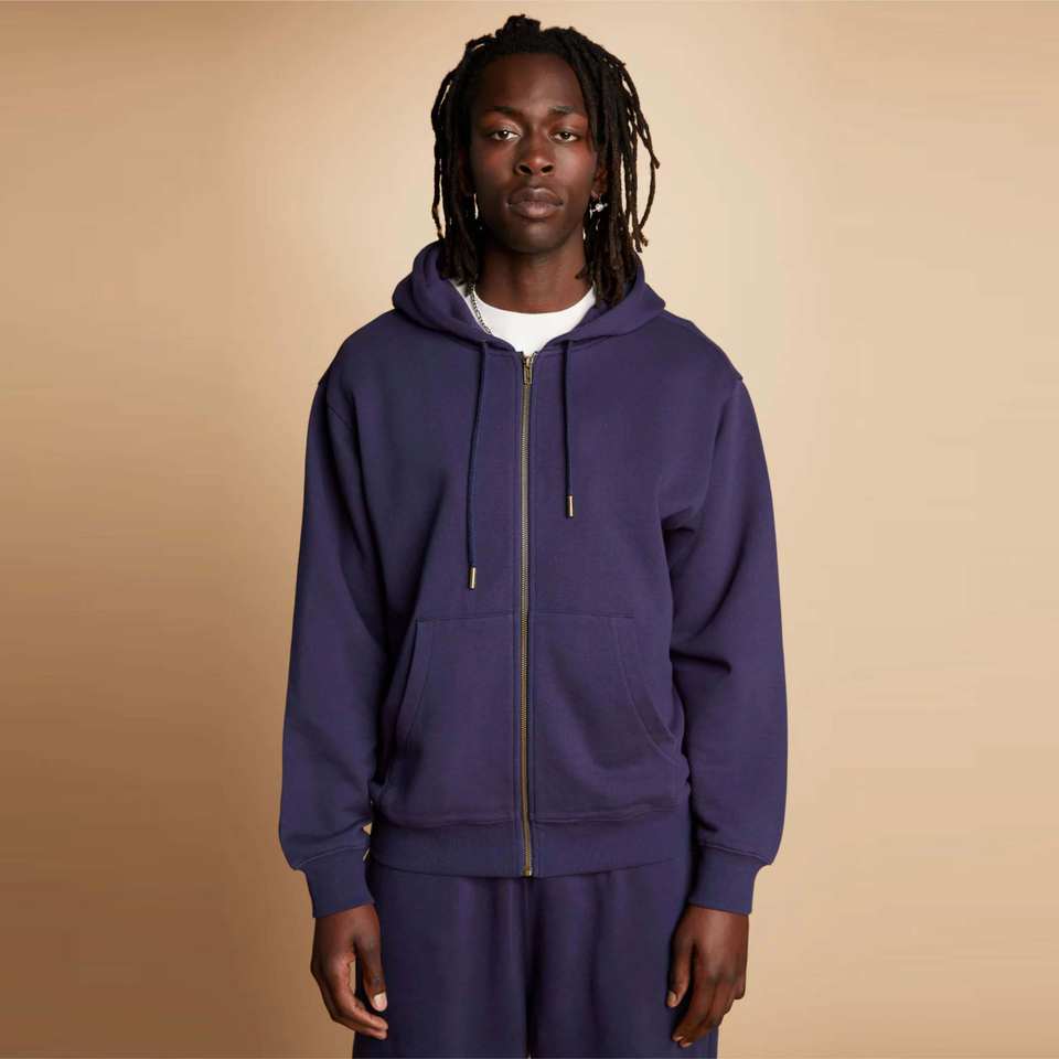 Classic Mens Navy Full-Zip Hoodie - Versatile and Cozy Hoodie for Year-Round Comfort, Great for Casual Wear, Sports, and Travel