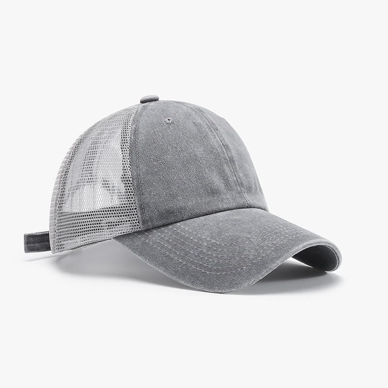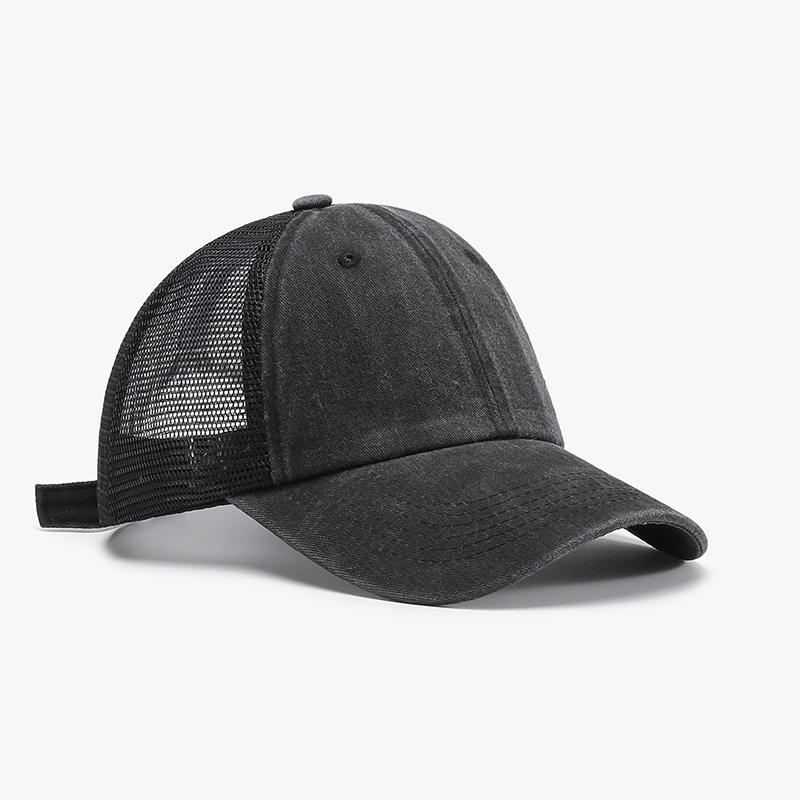 Casquette de baseball classique en maille, style trucker, délavée, respirante, réglable, à fermeture snapback, pour usage quotidien, avec dos en maille, OEM/ODM