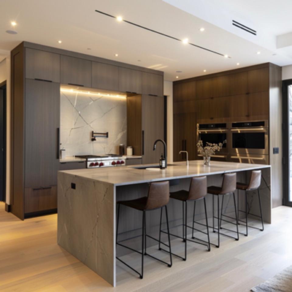 Ensemble d'armoires de cuisine en bois de conception modulaire classique, style moderne, taille personnalisée, couleur personnalisée, stratifié/pierre frittée, 1 an
