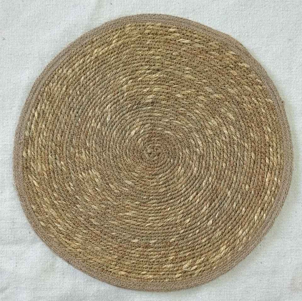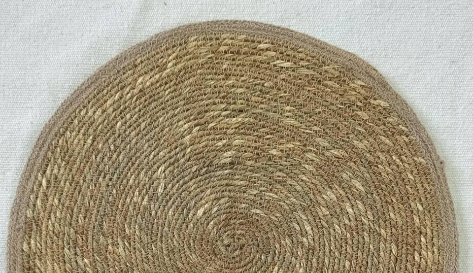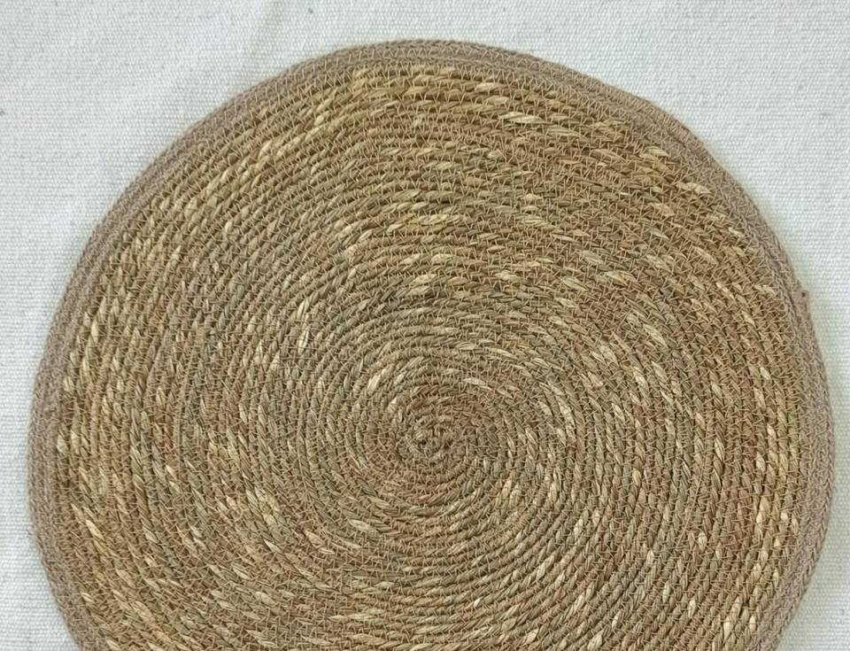Tapis rond artisanal classique en jonc de mer naturel et corde de coton, bordure écologique antidérapante, taille personnalisée, pour la maison et le jardin