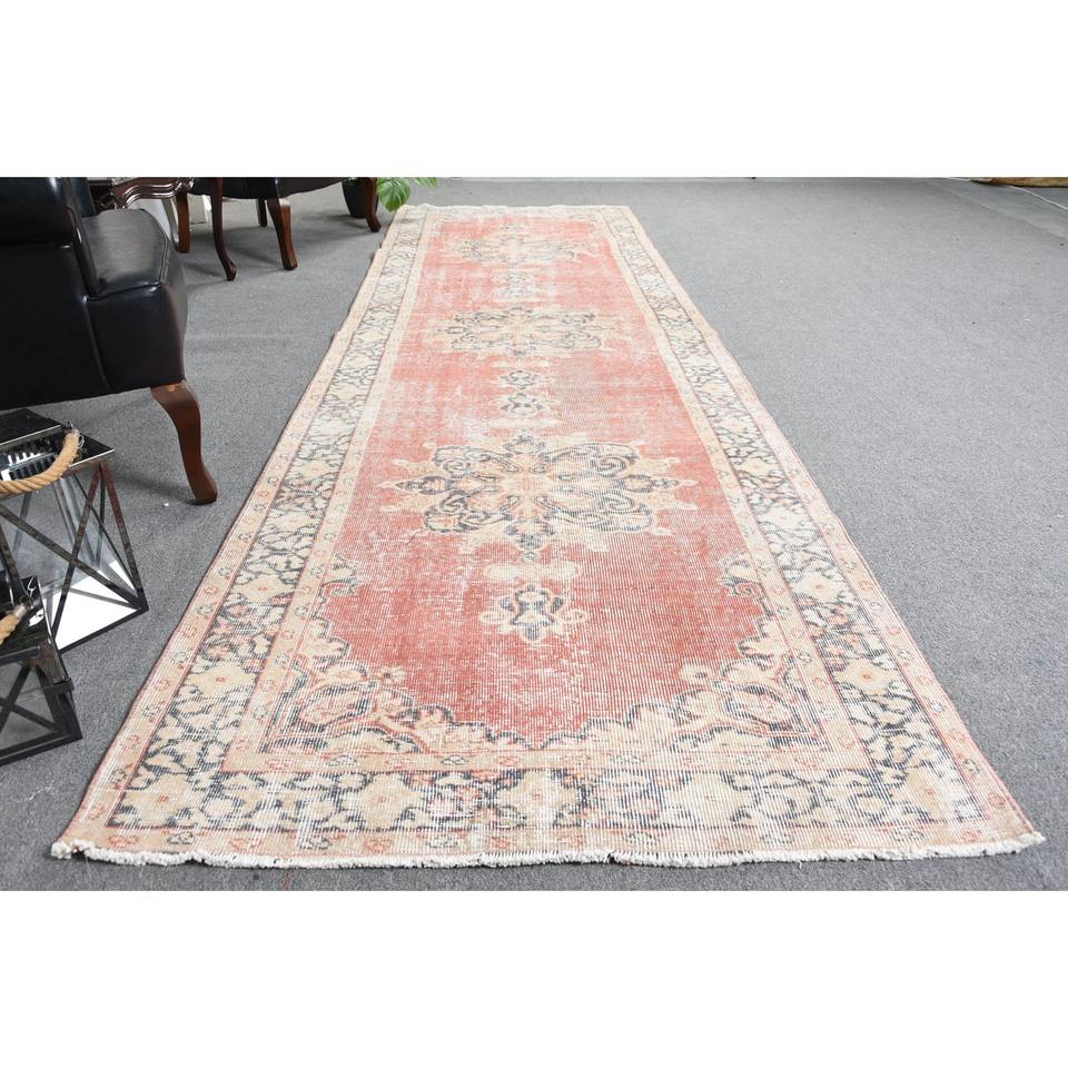Tapis Patchwork Beige Orange Classique 3.7X12.7 pieds Laine Turque Viscose Fourrure Couloir Rectangulaire pour Entrée Salon Latex