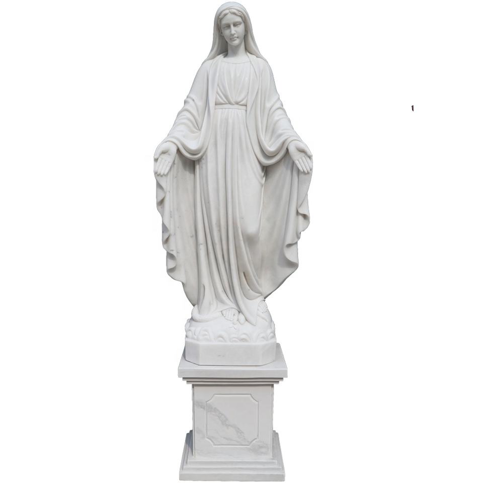 Statue de la Vierge Marie en marbre sculpté à la main, grandeur nature, classique, pour l'extérieur, église catholique, à vendre