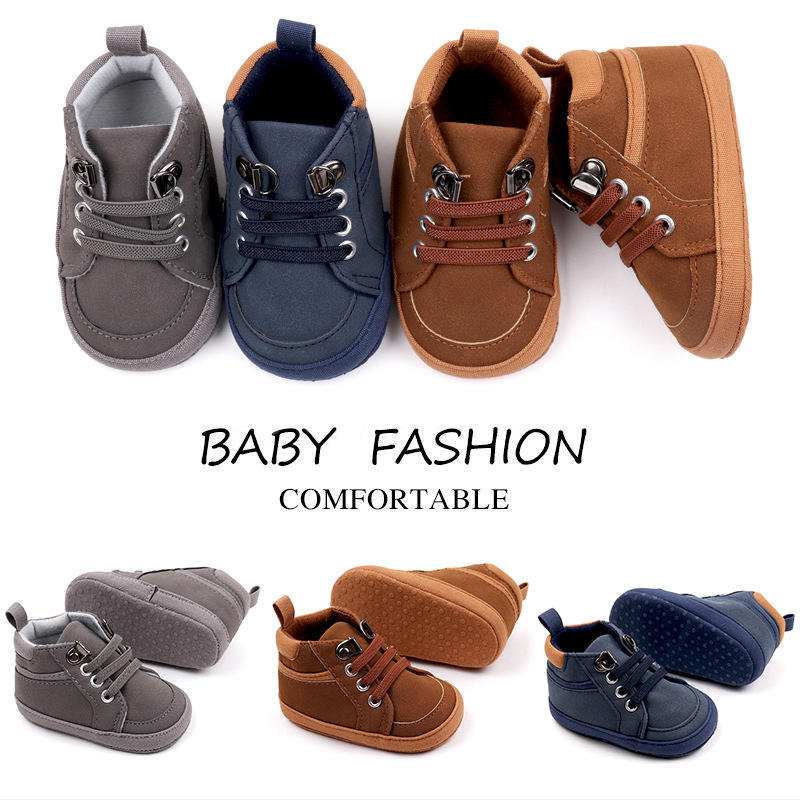 Chaussons classiques en cuir PU pour bébé - Semelle souple, faciles à mettre et à enlever, chaussures de berceau pour nourrissons de 0 à 18 mois