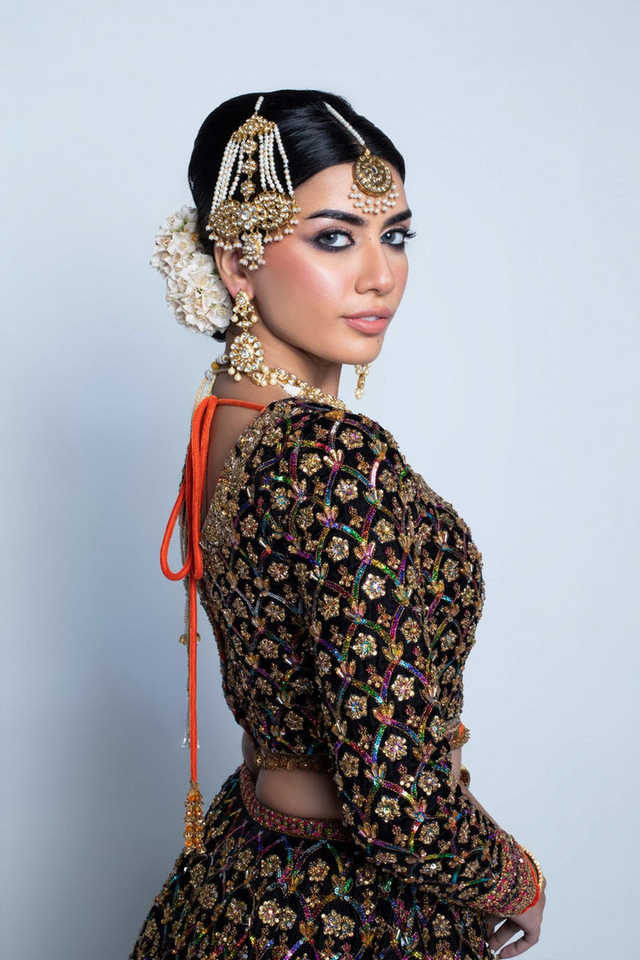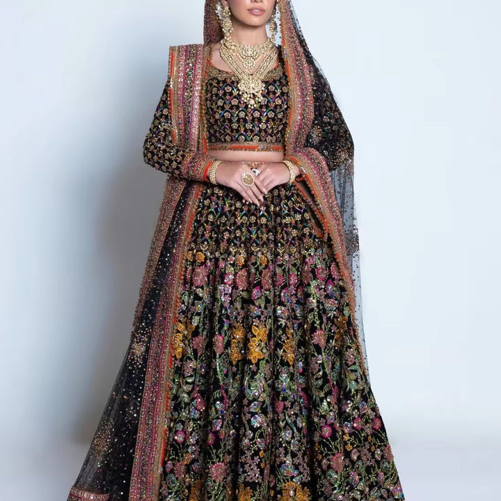 Modern Pakistani Bridal Wear Crystal Lace Embroidery Premium Embellishments Luxurious Wedding Design Contrast Color Floor-Length