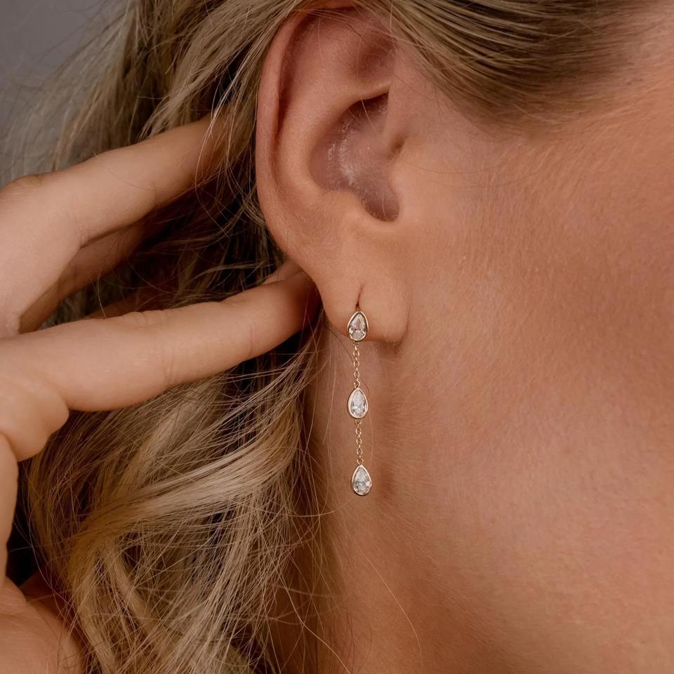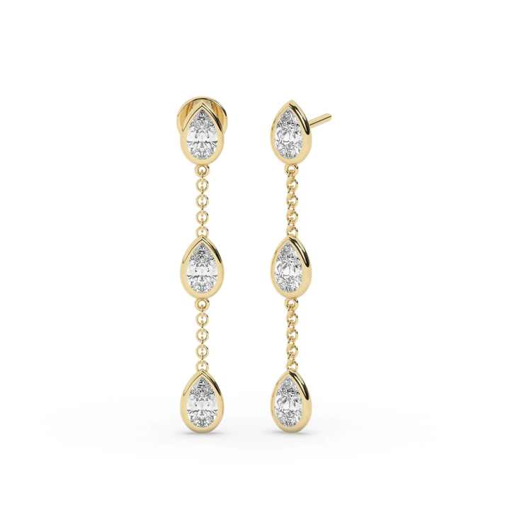 Boucles d'oreilles pendantes classiques minimalistes en diamant de laboratoire poire, serties clos en or 14K, 30mm, cadeau d'anniversaire