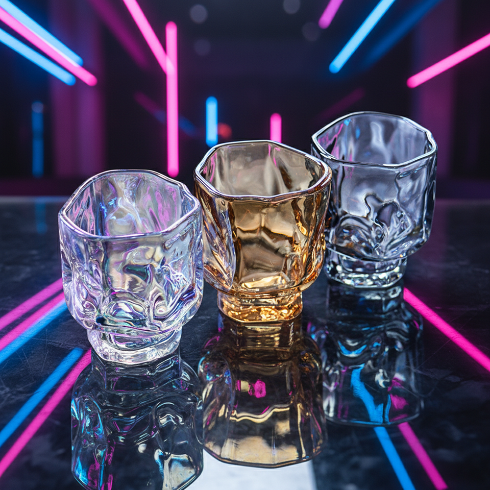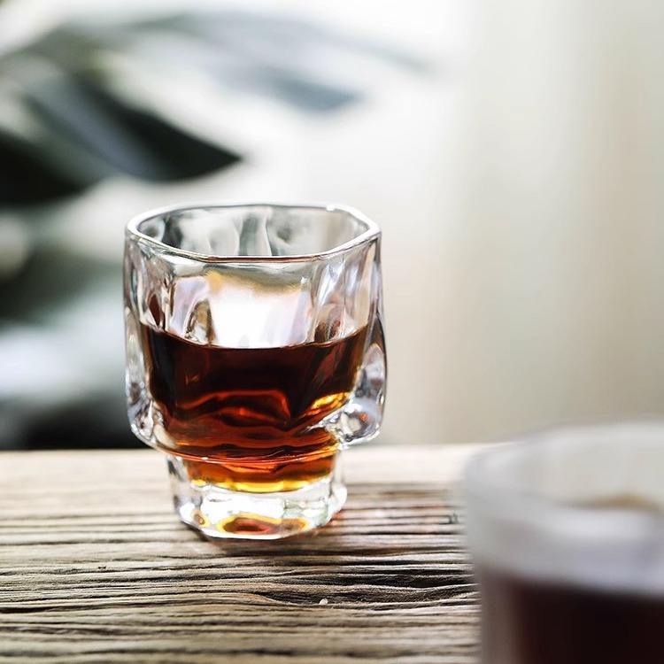 Verre à shot classique personnalisé réutilisable écologique style origami, mini verre à vin sculptural créatif à pied bas et épais 60ml