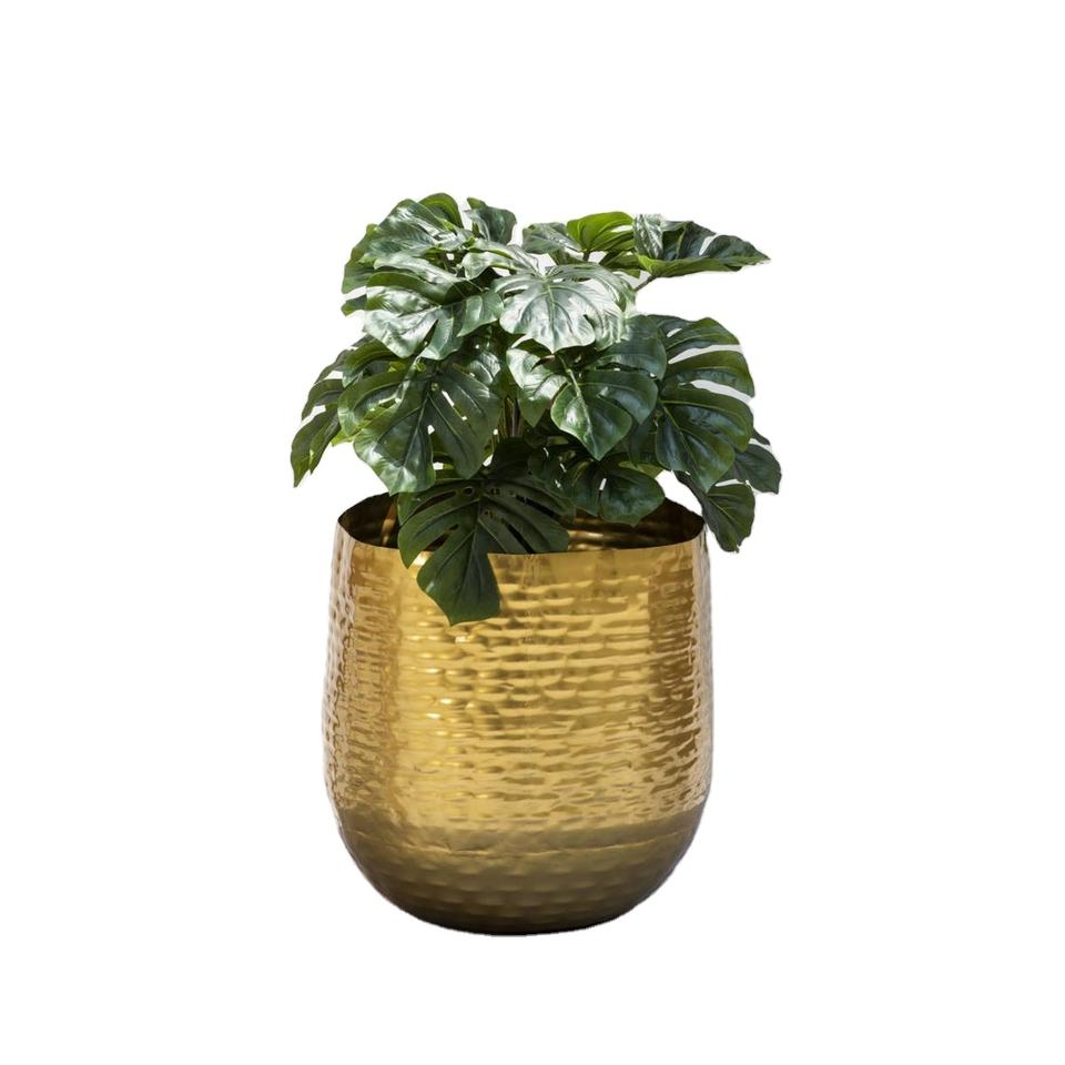 Jardinière classique pour la décoration de la maison, articles de jardin, balcon, couleur dorée, Design moderne, métal, intérieur et extérieur, support de jardinière à fleurs rondes