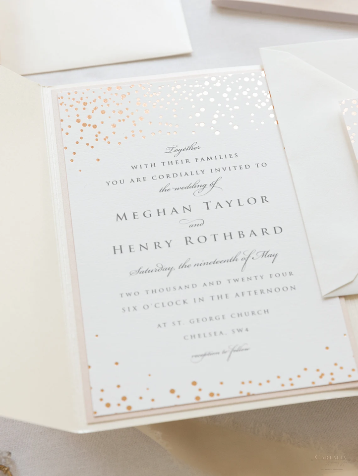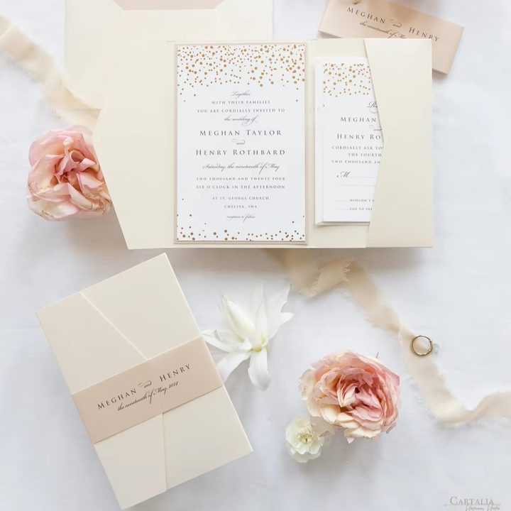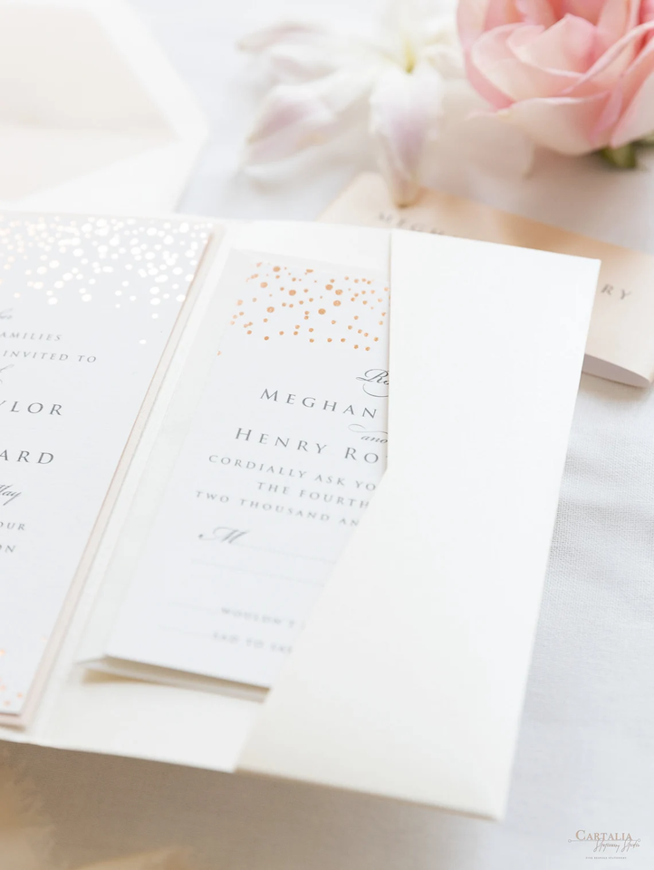 Classique Pocketfold Perle Shimmering Enveloppe Pli Dossier Rose Or Feuille Confettis Poche Suite Champagne Invitations De Mariage