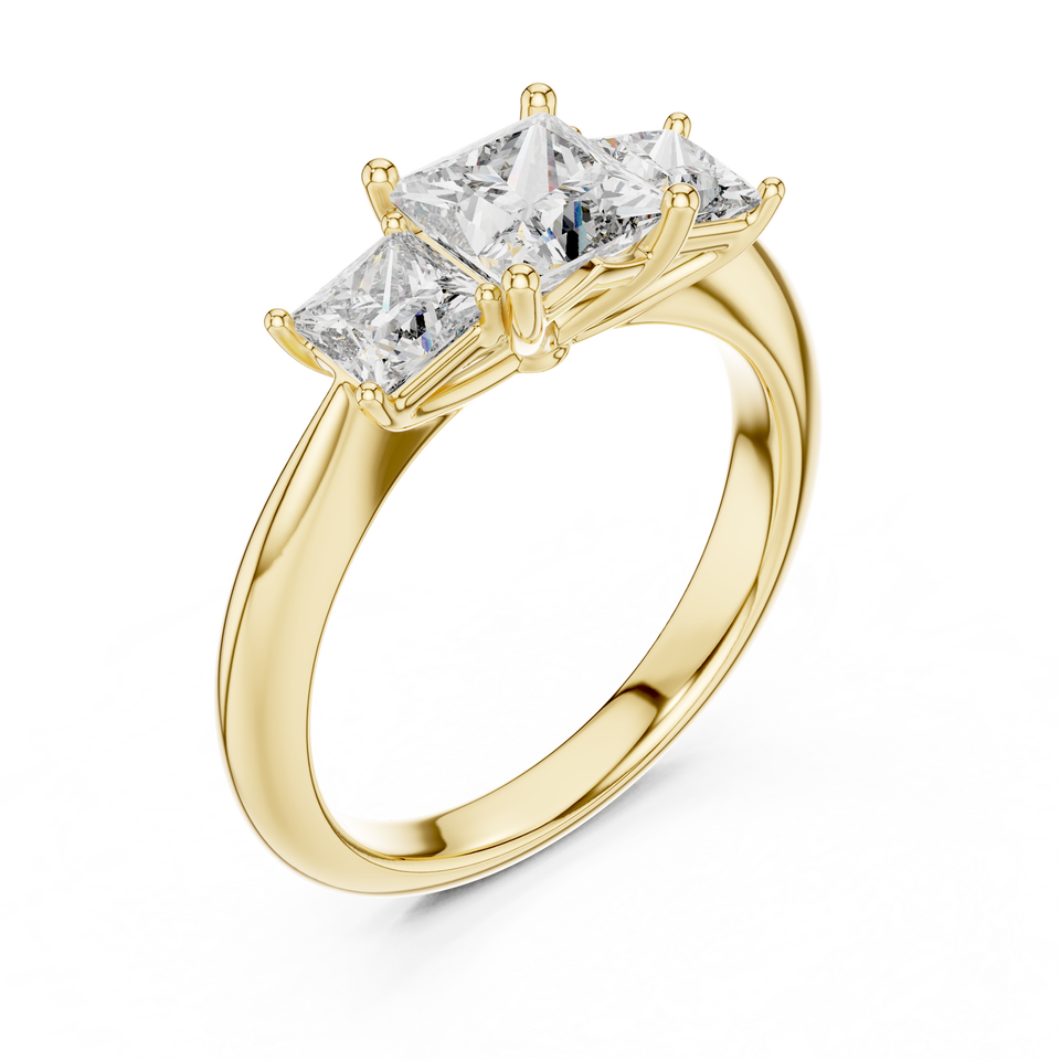 Bague de fiançailles classique en moissanite à trois pierres de taille princesse, en alliage d'or blanc 14 carats et argent sterling | Bague de Mariage Trilogy pour Femme |