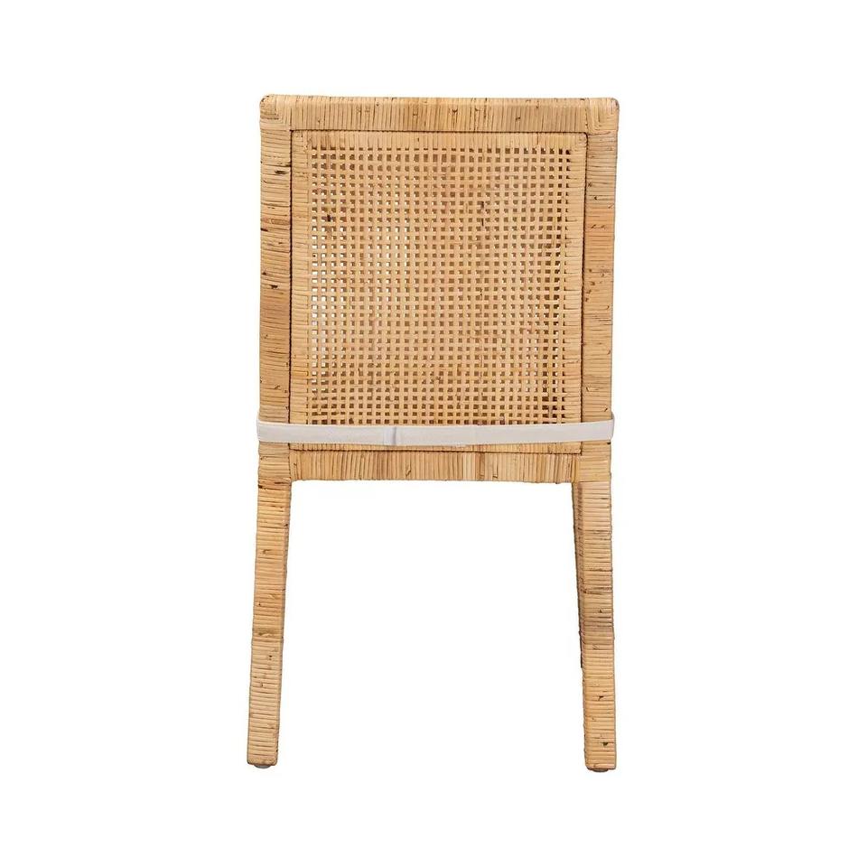 Chaise de salle à manger en rotin naturel avec coussin en coton, assise en osier faite à la main pour les intérieurs traditionnels et anciens