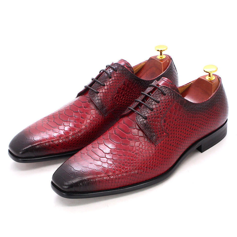 Chaussures de mariage formelles classiques pour hommes, rouges, à bout carré, de luxe, avec imprimé patchwork, imperméables, en cuir de vachette fait main, rehaussantes