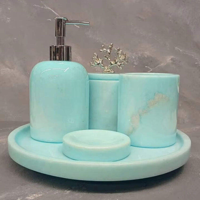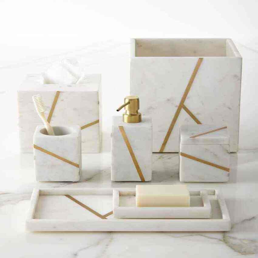 Ensemble de salle de bain trois pièces en résine classique Organisateur de vanité fait à la main Porte-savon Porte-brosse à dents Plateau de gobelet Essentiels élégants