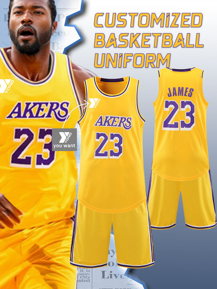 Ensemble de survêtement de basketball classique rétro jaune et violet respirant 100% fibre de bambou - Violet Or Dynastie Fan Équipement sportif YONO