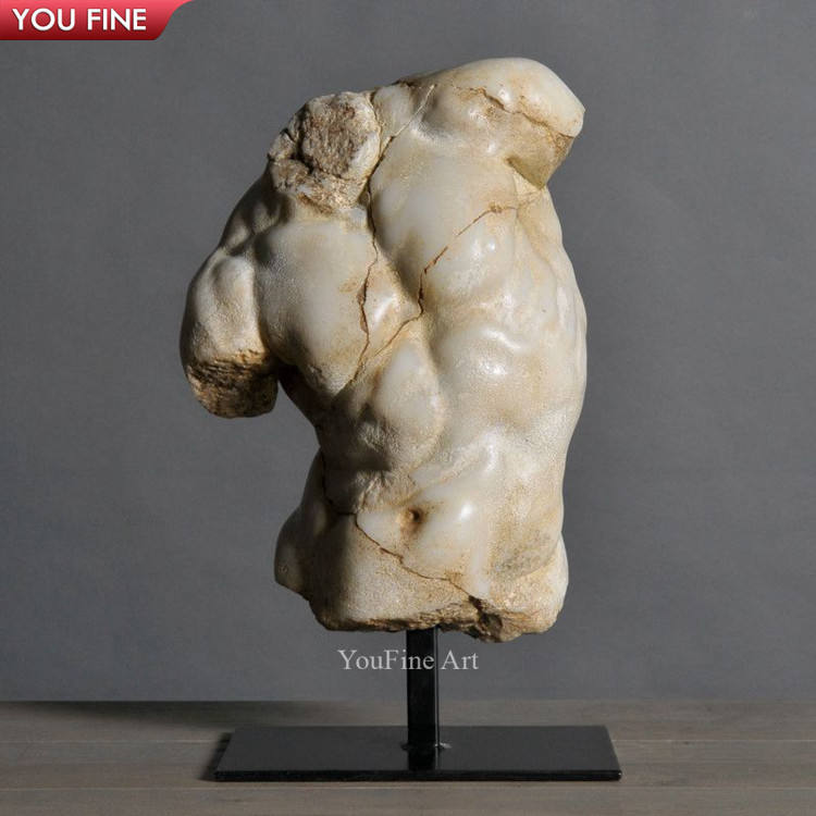 Statue de torse en marbre romain classique Sculpture de buste nu