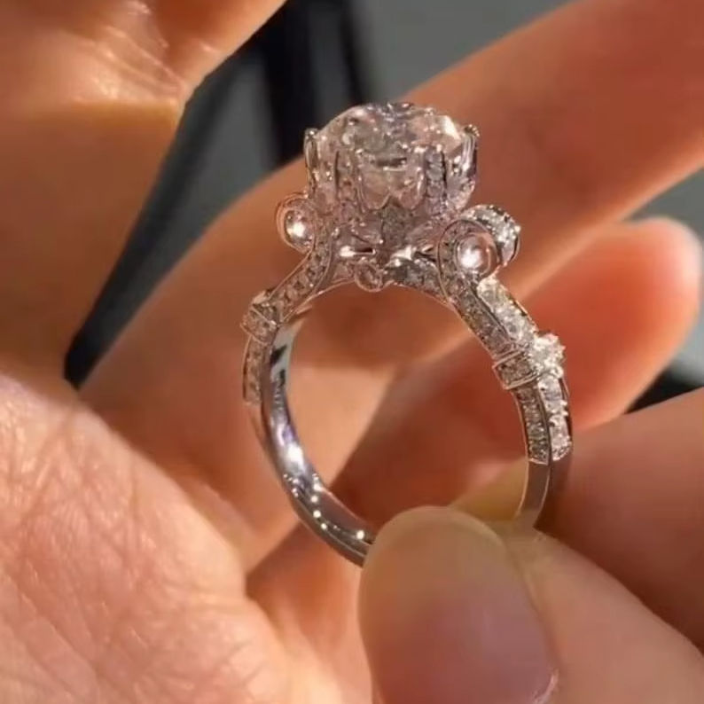 Bague Art Déco en Moissanite Taille Ronde