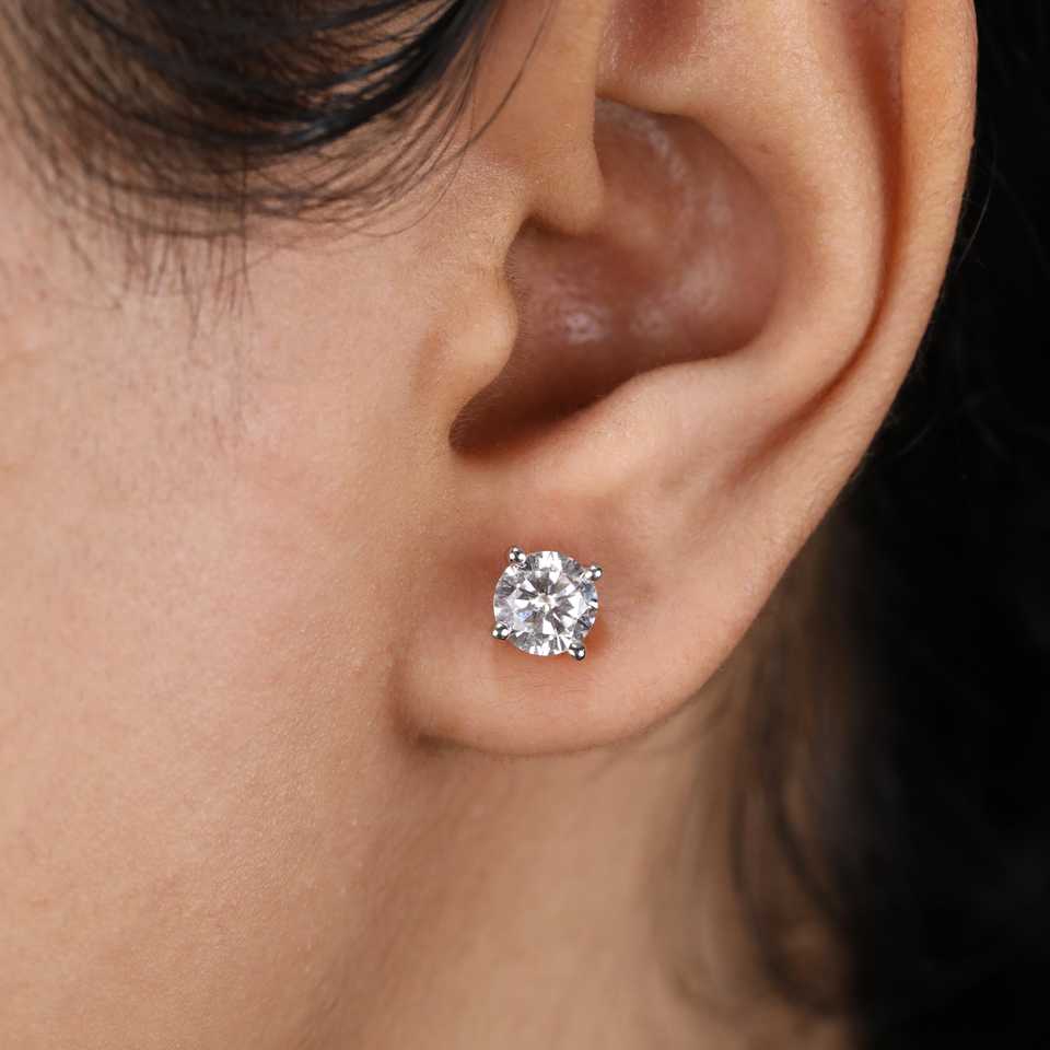 Classic Lab Grown Round Cut Solitaire Diamond Stud Earrings in Sterling Silver & Gold with VS1 Clarity