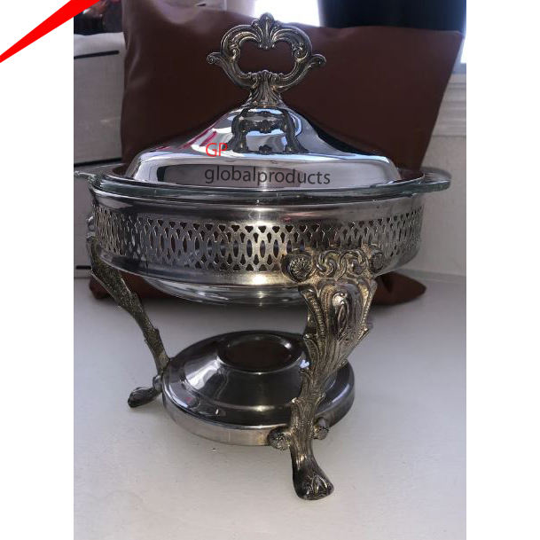 Buffet rond classique de styliste en acier en métal avec support en métal noir pour servir la nourriture