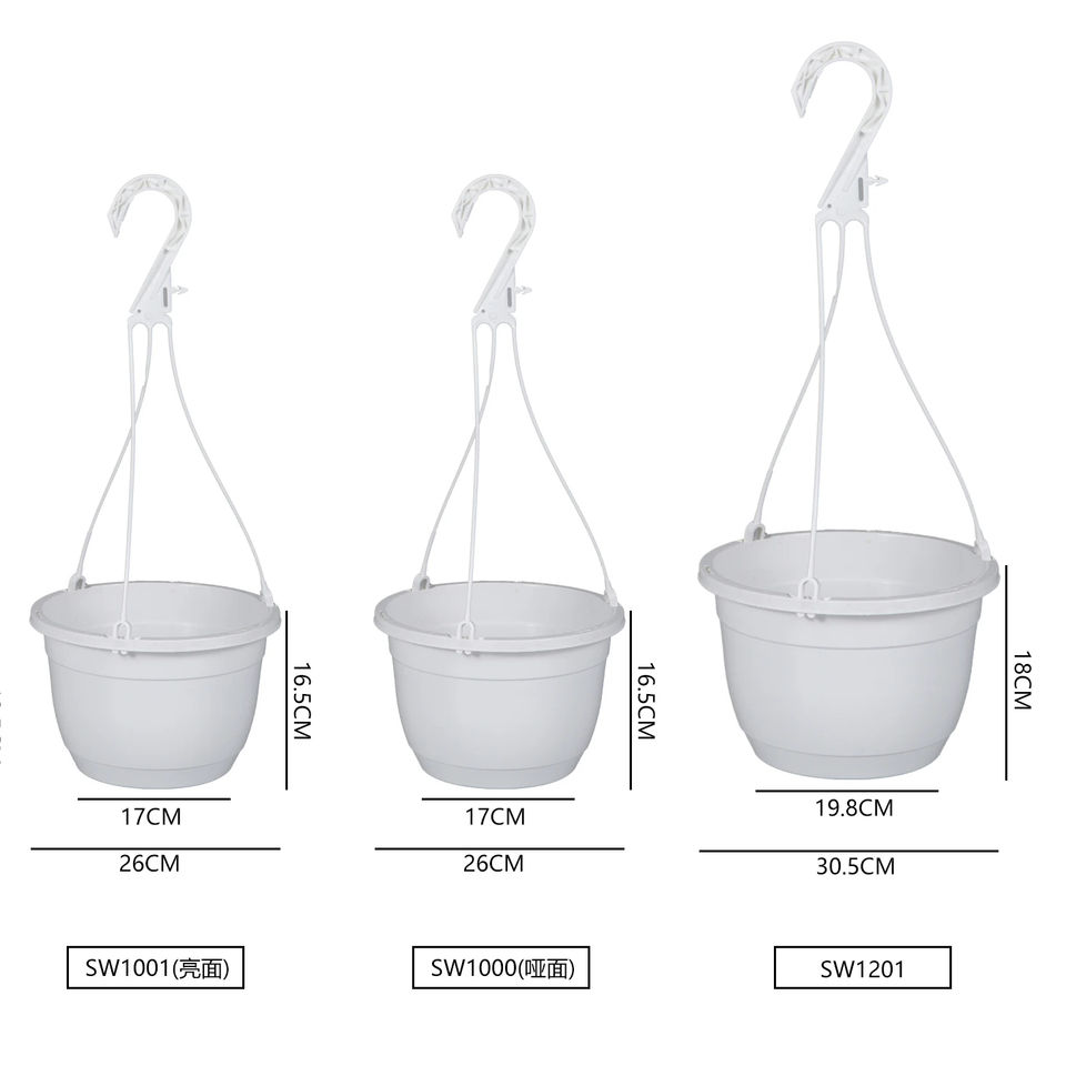 Jardinières rondes suspendues classiques, montage facile, matériau PP avec trous de drainage pour applications de jardin, balcon, extérieur