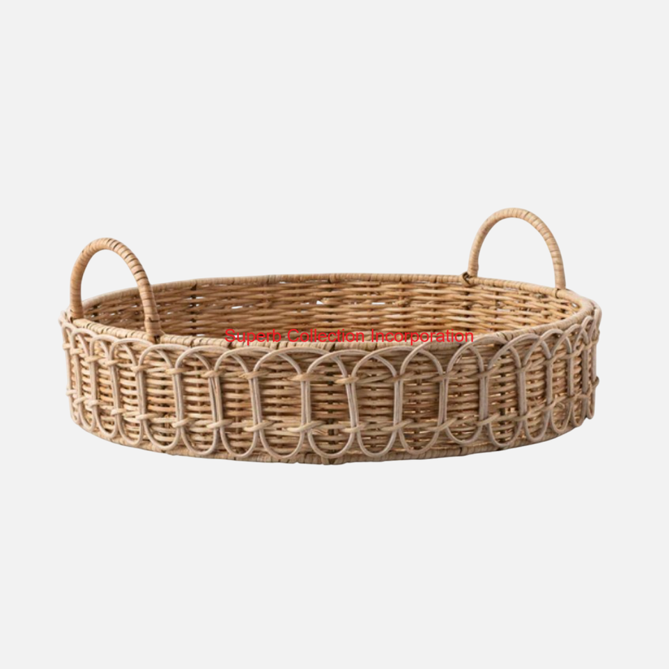 Plateau de service en rotin rond classique avec poignées plateau naturel pour décor à la maison Table basse cuisine et salle à manger écologique