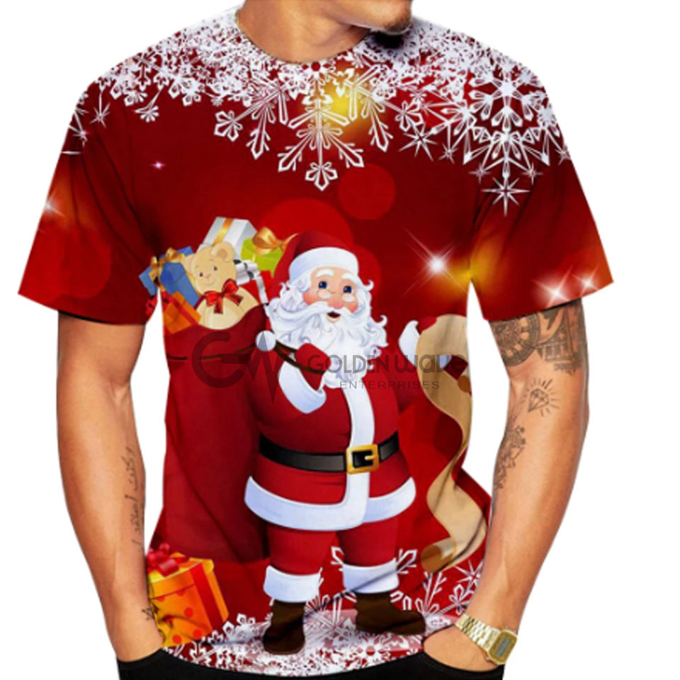 T-shirt manches courtes homme, Streetwear, Hip Hop, Harajuku, classique, père noël, bonhomme de neige, imprimé 3D, vêtements de haute qualité
