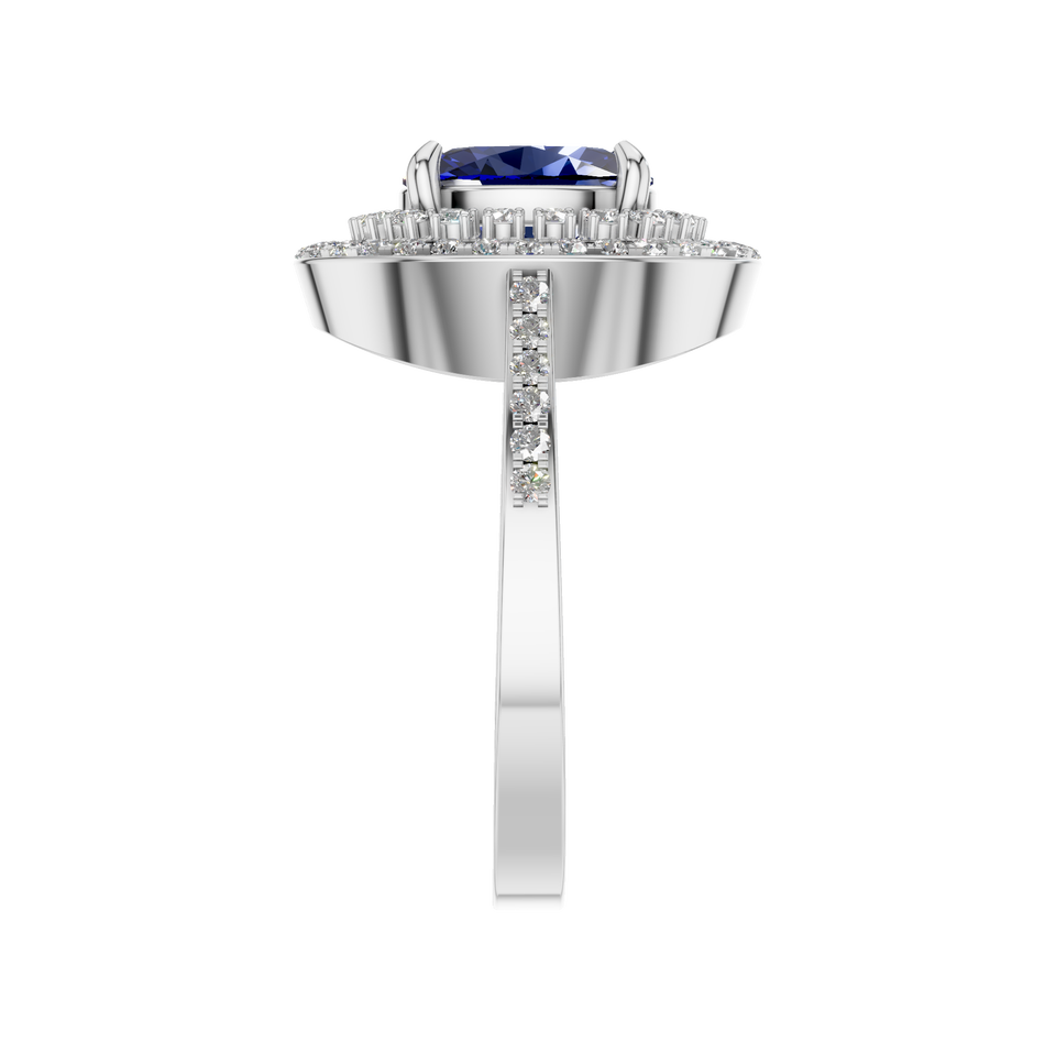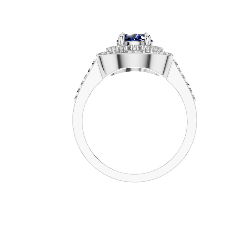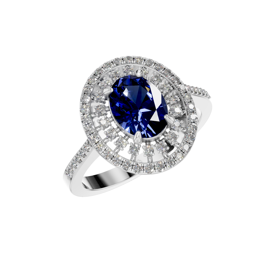 Style:Bague vintage ovale avec saphir bleu et halo de diamants
