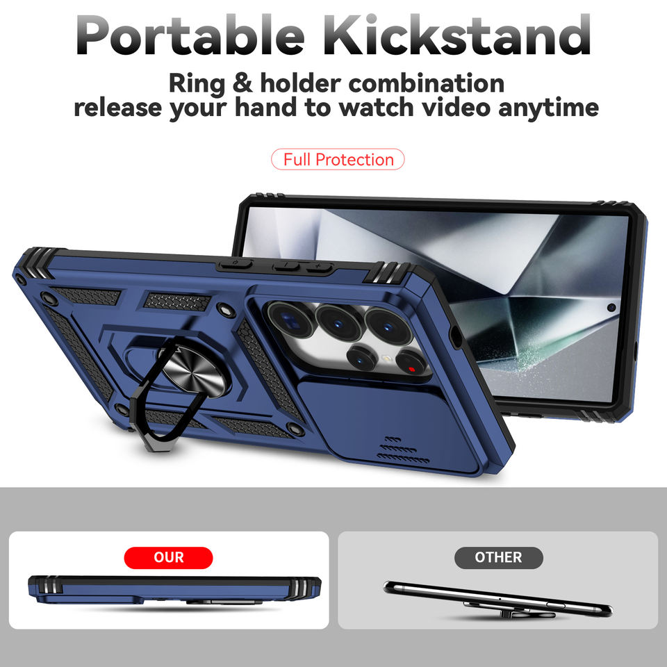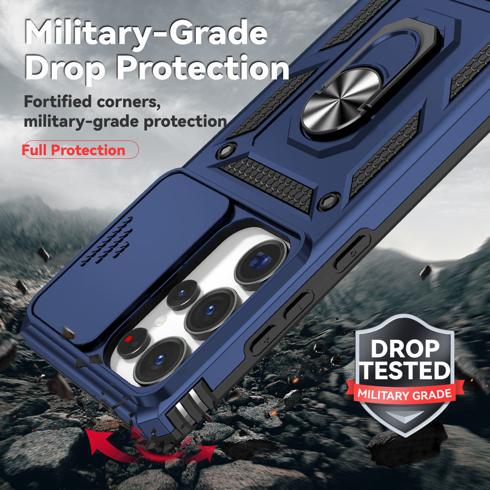 Étui de téléphone classique antichoc avec anneau de caméra coulissant, support magnétique pour voiture, pour Samsung S25 Ultra S24 S23 A07 A17 A05 S20